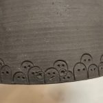 Tout est parti d’un outil cassé. Ma chère mirette pointue s’est brisée la lame, je ne pouvais plus faire les petites traces caractéristiques de mes créations au bas de mes pots. Alors j’ai fait avec les moyens du bord et j’ai créé divers motifs pour texturer et décorer mes créations. J’ai par exemple réalisé ce… Lire la suite : La collection des p’tits bonhommes - Visite guidée du Parcours des arts